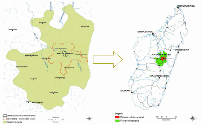 - Future urban sprawl: 38 municipalities are part of the future urban masterplan for Antananarivo (horizon 2033) and the Integrated Water and Sanitation Program for Antananarivo (PIAA).