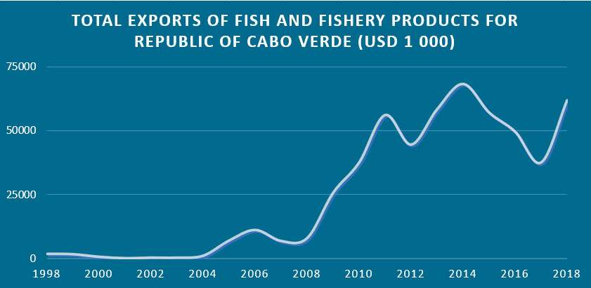 500 km off the coast of Senegal, in the Atlantic Ocean, an archipelago of ten islands and eight islets forms the Republic of Cabo Verde. Cabo Verde has more than 1 000 km of coastline on which about 80 percent of its population of an estimate of 500 000 inhabitants live: its distinctive characteristics make the fisheries fundamental for livelihoods and the economy. In 2018, the sector provided employment to 6 283 full time marine fishers and per capita fish consumption was 11.2 kg, mostly ensured by artisanal fishing in the form of fresh fish. National production totalled 26 600 tonnes in 2018 and was shared between local consumption, and export, which plays a crucial role in Cabo Verde’s economy, as it contributes to almost 80 percent of the total country exports, valued at USD 61 millions.