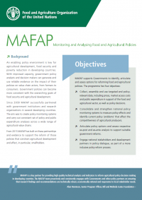 The flyer provides an updated description of the MAFAP programme. The first section provides some background, the second recalls the Programme's objectives. In the second page, a chart presents an overview of objectivies and activities and is complemented by a map showcasing MAFAP countries. The previous flyer reflects only partially the current status.
