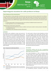 Kenya´s cattle producers are currently hindered by the structure and functioning of the domestic market, recurring drought, the prevalence of disease and the inability to meet importing countries’ sanitary requirements. MAFAP analysis suggests that unless these issues are addressed, they will continue to serve as major barriers to Kenya’s stated goal of expanding its cattle export market as a strategy for poverty alleviation in its Arid and Semi-Arid Lands (ASALs) regions.