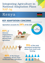 NAP-Ag activities in Kenya are oriented towards promoting and implementing climate-smart agricultural practices for the long-term. Short and medium term contributions include: increasing awareness on climate change impacts and assessing climate risk and vulnerability of agricultural value chains; identifying synergies between adaptation and mitigation; promoting uptake of climate-related information for agriculture; and developing and upscaling specific adaptation in the agricultural sub-sectors.