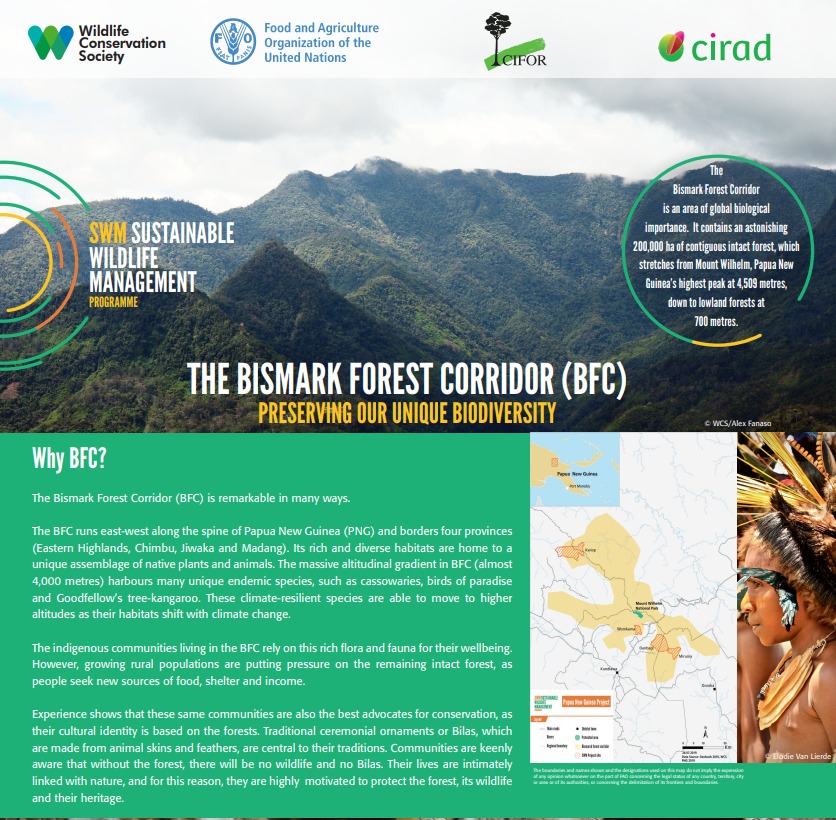 The Bismarck Forest Corridor is one of the most biodiverse regions in the world, with a high level of endemism. The region is also home to a diverse group of Indigenous communities who, as customary landowners, rely on the forest’s wildlife for food and traditional practices. The Sustainable Wildlife Management (SWM) Programme is piloting an approach to secure these high biodiversity value and culturally important landscapes through ground-up, community-based conservation measures across four key provinces in the Papua New Guinea (PNG) Highlands, with support from the provincial and district administration.