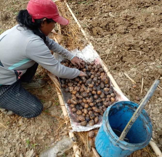 To encourage crop rotation with potatoes to improve soil health and reduce pest infestations, capacity-building inputs on organic and integrated pest management (IPM) approaches to minimize disease risks were provided to the farmers. Drought-resistant and high-yielding indigenous potato varieties suitable for Mizoram’s agro-climatic conditions were procured. The project distributed 8 tons of potato seeds to 60 farmers. In total, 11.5 tons of winter vegetables were distributed in 2024 under this initiative