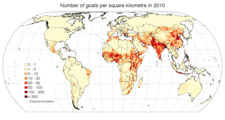 The domestic goat (Capra aegagrus hircus) is a widely distributed small ruminant species that is kept mainly for meat, milk, hides and hair. Unlike cattle and sheep goats are primarily browsing animals and have an extremely varied plant diet that has allowed them to adapt to many diverse environments. They are raised in a wide range of production systems around the world. The majority are raised in smallholder, mixed farming systems but goats are an important component of pastoralist herds and high-value animals are raised for specialized dairy production in temperate regions.