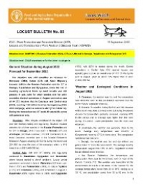 The situation was still classified as cautious for Moroccan (DMA), Italian (CIT) and Asian Migratory Locusts (LMI) in the Russian Federation and for CIT in Georgia, Kazakhstan and Kyrgyzstan, since the risk of invading agricultural fields by adult locusts was still present. It was calm for other species and for other countries. Control operations in August covered an area of 44 373 hectares (ha) in Caucasus and Central Asia (CCA), reaching 1.94 million ha since the beginning of the 2022 campaign, which is similar to 2021 (1.93 million ha). During the forecast period, CIT and LMI natural life cycles will come to an end.