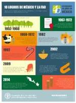 En el marco de los 40 años de la FAO en México, la presente infografía presenta 10 de los principales logros que se han tenido en la cooperación entre México y la FAO. El trabajo conjunto de la organización y las instituciones del gobierno mexicano buscan lograr la seguridad alimentaria y nutricional de todas las mexicanas y mexicanos, el uso sostenible de los recursos naturales y acabar con la pobreza rural.