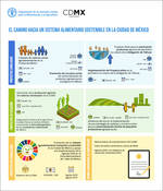 La infografía muestra los diversos proyectos que la FAO ha trabajado o está actualmente imprementando junto con el Gobierno de la Ciudad de México para lograr un sistema alimentario urbano sostenible, incluyente y resiliente