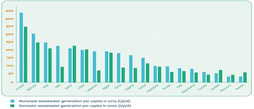 Per capita municipal and domestics wastewater generation in MENA countries.