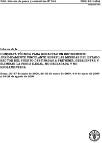 El presente documento contiene el Informe de la Consulta técnica para redactar un instrumento jurídicamente vinculante sobre las medidas del Estado rector del puerto destinadas a prevenir, desalentar y eliminar la pesca ilegal, no declarada y no reglamentada. La Consulta se celebró en cuatro reuniones en la Sede de la FAO en Roma, del 23 al 27 de junio de 2008, del 26 al 30 de enero de 2009, del 4 al 8 de mayo de 2009 y del 24 al 28 de agosto de 2009. La Consulta fue convocada por el Director General de la Organización de las Naciones Unidas para la Agricultura y la Alimentación por recomendación del Comité de Pesca de la FAO en su 27.º período de sesiones. La Consulta técnica finalizó el Proyecto de Acuerdo sobre medidas del Estado rector del puerto destinadas a prevenir, desalentar y eliminar la pesca ilegal, no declarada y no reglamentada el 28 de agosto de 2009. Dicha Consulta fue financiada por los Gobiernos de Australia, Canadá, los Estados Unidos de América, Noruega y Nueva Zelandia.