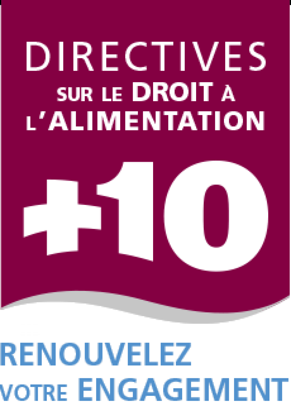 Chères Défenseures, Chers Défenseurs du droit à l'alimentation, l’année 2014 marque le dixième anniversaire de l’adoption des « Directives volontaires à l'appui de la concrétisation progressive du Droit à une alimentation adéquate dans le contexte de la sécurité alimentaire nationale » (Directives sur le droit à l’alimentation) en 2004. Lors de sa trente-neuvième session tenue en octobre 2012, le Comité de la sécurité alimentaire mondiale (CSA) a demandé qu’une séance soit consacrée, en 2014, à un examen rétrospectif des progrès accomplis au cours des dix années précédentes dans la mise en œuvre des Directives sur le droit à l’alimentation (CFS 39 Item VIII, par 21d).