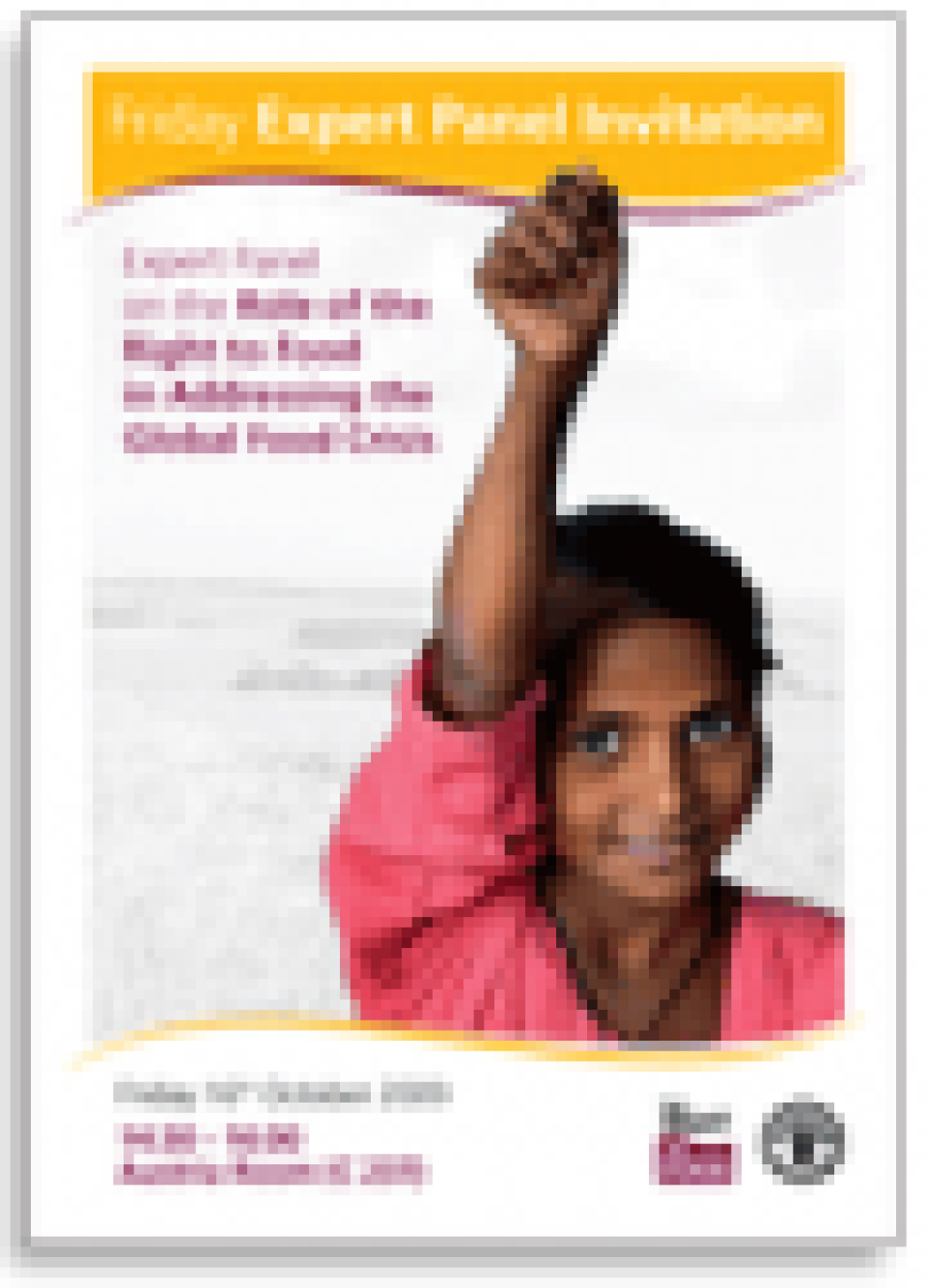 The Expert Panel on “The Role of the Right to Food in Addressing the Global Food Crisis” is consistent with the World Food Week theme, “Achieving Food Security in Times of Crisis” and it will be a useful occasion to reflect in the view of FAO major event in November, the World Food Summit.