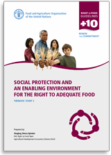 Cette étude thématique jette un regard rétrospectif sur les évolutions en matière de protection sociale entre 2004 et 2014 prenant en considération les recommandations des directives 8, 13 et 14 et des mesures pour la coopération internationale et des partenariats pour la promotion du droit à une alimentation adéquate. Elle présente la trajectoire d’une approche de la protection sociale axée sur les droits de l’homme à travers les espaces politiques et dans des contextes d’intervention de sécurité alimentaire.