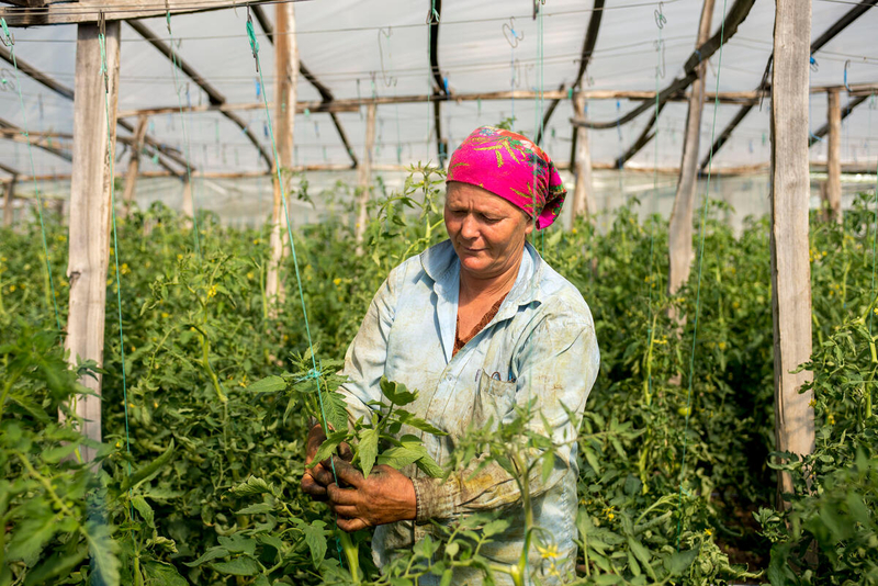 Ungheni, Moldova - Farm worker in tomatoes green house.