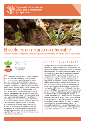 Los suelos sufren una creciente presión por la intensificación y la competencia de su uso para la agricultura, la silvicultura, el pastoreo y la urbanización. Se estima que la demanda de alimentos, piensos y fibras de una población creciente aumentará un 60 por ciento para 2050. Estas presiones, combinadas con usos y prácticas de gestión no sostenibles de la tierra, así como los fenómenos climáticos extremos, causan su degradación. Por lo tanto, la conservación del suelo y el manejo sostenible de la tierra se han convertido en esenciales para revertir la tendencia de la degradación del suelo y garantizar la seguridad alimentaria y un futuro sostenible.