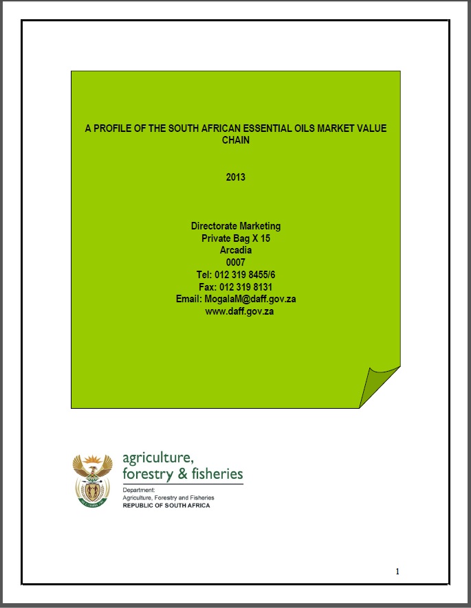 This document is an update of the 2012 analysis of the South African essential oils subsector. Starting with a brief overview of the essential oils industry and harvesting, the report focuses on the export and import volumes, distribution channels, market access and competitiveness. It ends with a specific analysis of the essential oil peppermint.