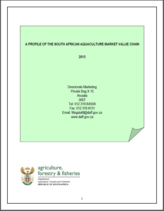 This document is an update of the 2012 analysis of the South African aquaculture value chain. It provides a description of the industry and of the market structure, together with an accurate analysis of threats and opportunities found in the sub-sector and of aquaculture value chains potentialities and competitiveness in import and export markets.