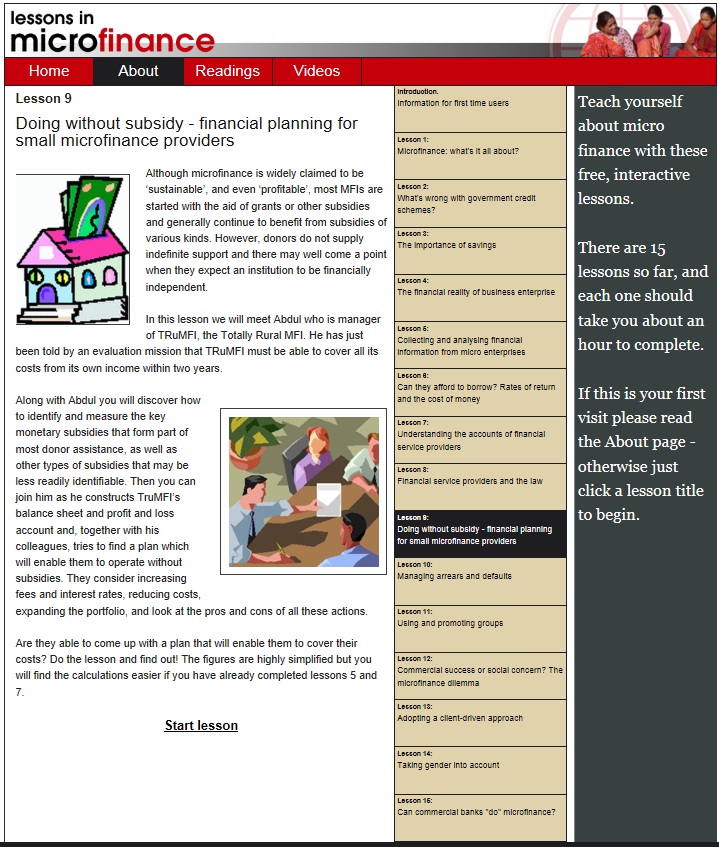 Lesson 09: Doing without Subsidy - Financial Planning for Small Microfinance Providers