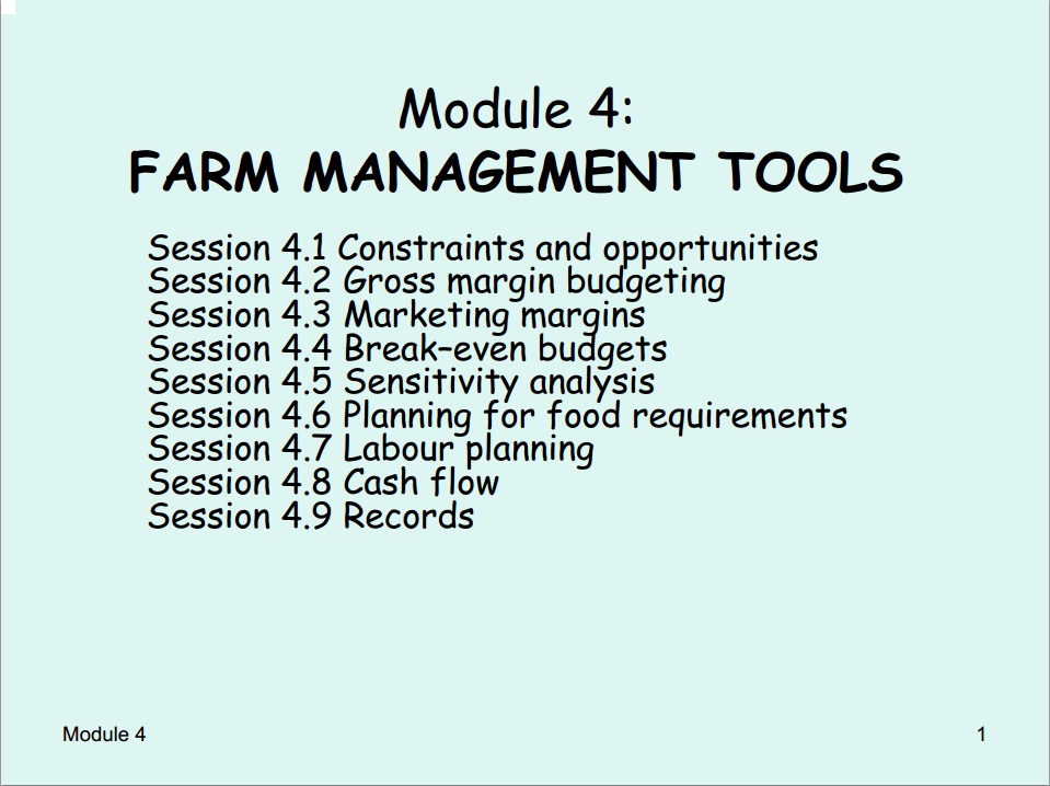 5.1. Training Aids Package - Module 4 - Farm Management Tools