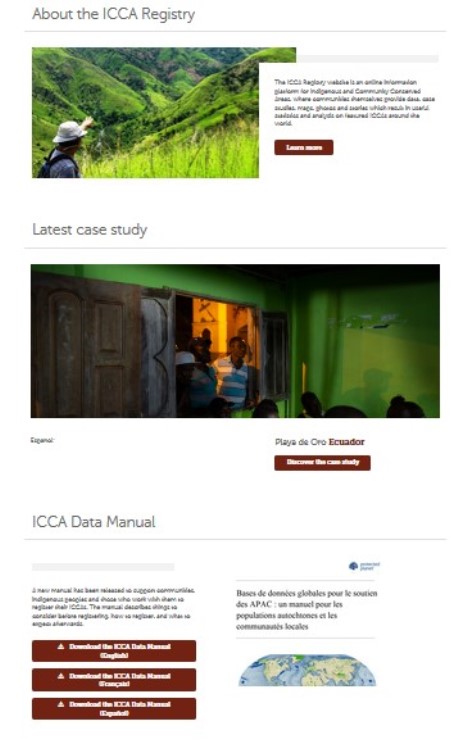 The ICCA Registry website is an online information platform for Indigenous and Community Conserved Areas (ICCA), where communities themselves provide data, case studies, maps, photos and stories which result in useful statistics and analysis on featured ICCAs around the world
