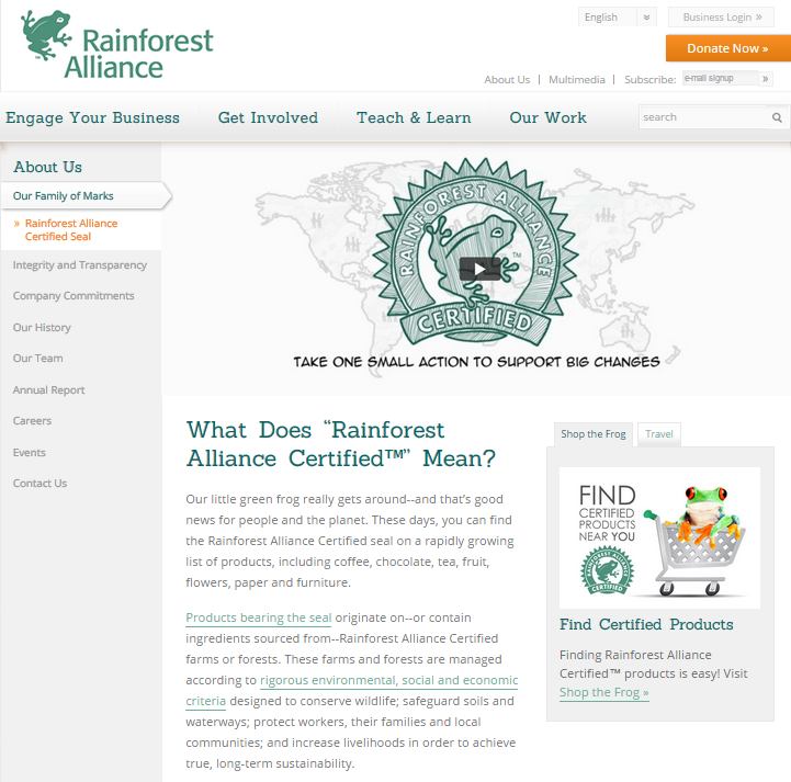 The Rainforest Alliance works to conserve biodiversity and ensure sustainable livelihoods by transforming land-use practices, business practices and consumer behavior. Products bearing the seal originate on--or contain ingredients sourced from--Rainforest Alliance Certified farms or forests. These farms and forests are managed according to rigorous environmental, social and economic criteria designed to conserve wildlife; safeguard soils and waterways; protect workers, their families and local communities; and increase livelihoods in order to achieve true, long-term sustainability. For forestry, the Rainforest Alliance auditors evaluate logging companies and other forestry businesses against the globally respected criteria of the Forest Stewardship Council (FSC), which the Rainforest Alliance helped to establish in 1993.