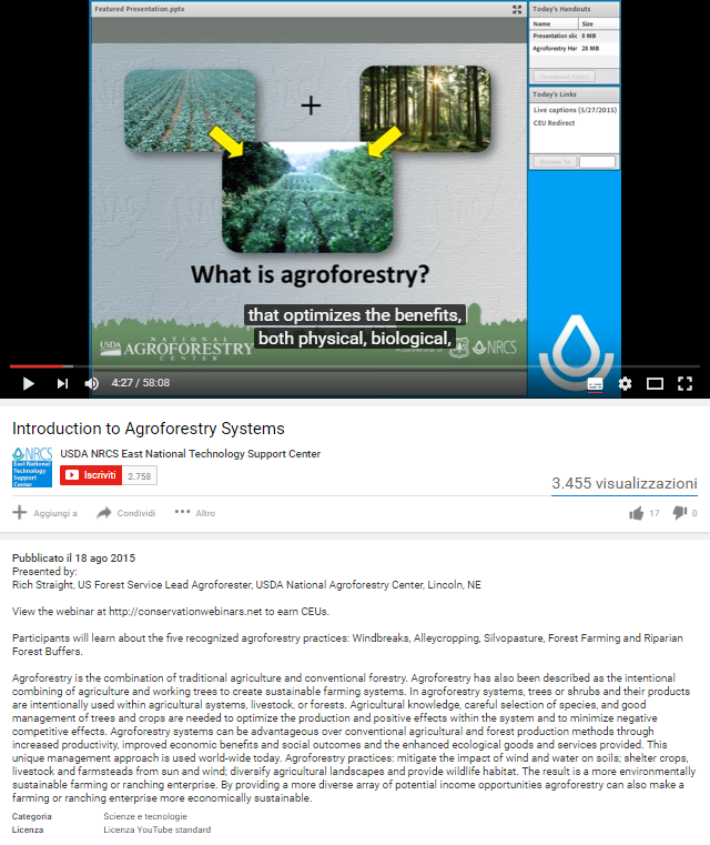 Rich Straight in this webinair talks about agroforestry as combination of traditional agriculture and conventional forestry. Agroforestry has also been described as the intentional combining of agriculture and working trees to create sustainable farming systems. In agroforestry systems, trees or shrubs and their products are intentionally used within agricultural systems, livestock, or forests. Agricultural knowledge, careful selection of species, and good management of trees and crops are needed to optimize the production and positive effects within the system and to minimize negative competitive effects. Agroforestry systems can be advantageous over conventional agricultural and forest production methods through increased productivity, improved economic benefits and social outcomes and the enhanced ecological goods and services provided.