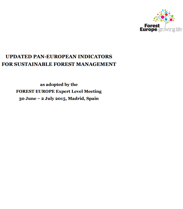Since the first set of Pan-European Indicators for Sustainable Forest Management in 1998 and its improvement in 2003, experience has shown that criteria and indicators are a very important tool for European forest policy. Based in the improvement of knowledge and data collection systems as well as the current and upcoming information needs an update of the indicators is needed. Thus, the Expert Level Meeting (ELM) on January 2015 decided to update the existing set of Pan-European Indicators for SFM.
