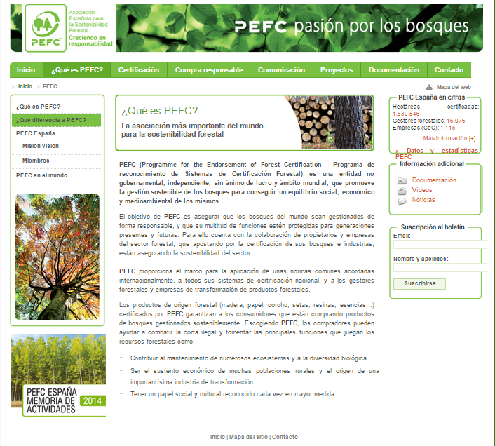 PEFC (Programme for the Endorsement of Forest Certification – Programa de reconocimiento de Sistemas de Certificación Forestal) es una entidad no gubernamental, independiente, sin ánimo de lucro y ámbito mundial, que promueve la gestión sostenible de los bosques para conseguir un equilibrio social, económico y medioambiental de los mismos. El objetivo de PEFC es asegurar que los bosques del mundo sean gestionados de forma responsable, y que su multitud de funciones estén protegidas para generaciones presentes y futuras. Para ello cuenta con la colaboración de propietarios y empresas del sector forestal, que apostando por la certificación de sus bosques e industrias, están asegurando la sostenibilidad del sector. PEFC proporciona el marco para la aplicación de unas normas comunes acordadas internacionalmente, a todos sus sistemas de certificación nacional, y a los gestores forestales y empresas de transformación de productos forestales.