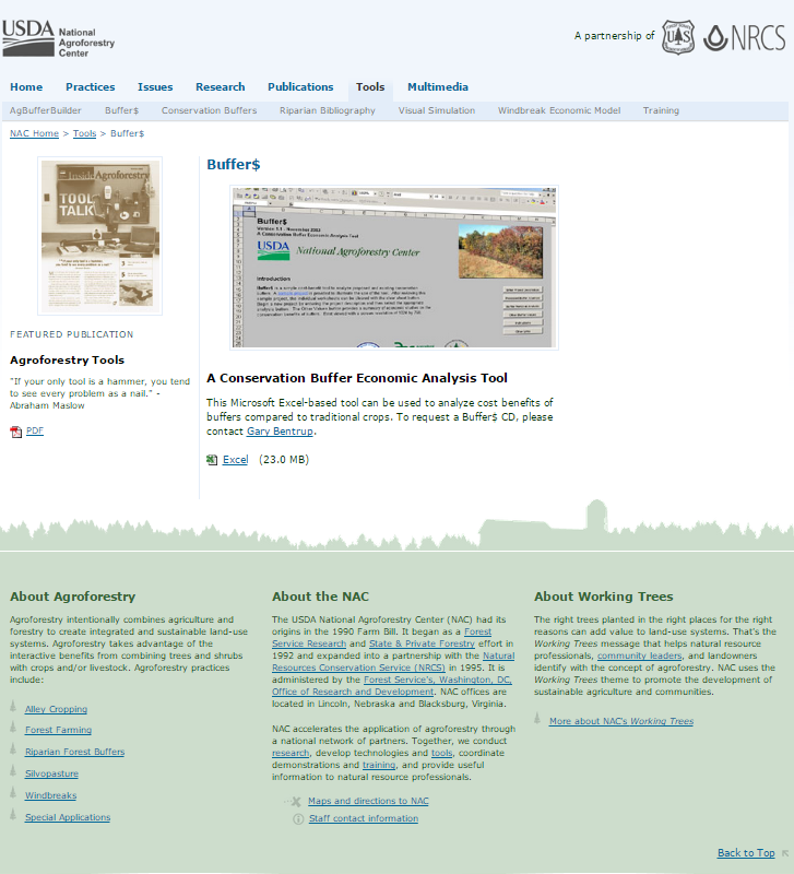 This Microsoft Excel-based tool can be used to analyze cost benefits of buffers compared to traditional crops.