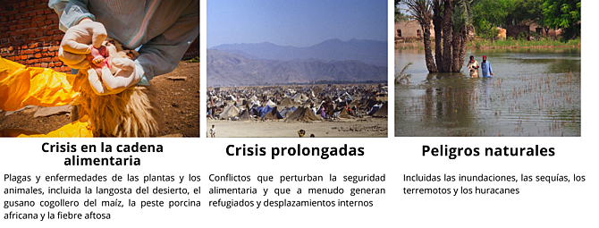 Los proyectos del PCT relativos a las emergencias apoyan tanto las medidas anticipatorias como las respuestas inmediatas a las catástrofes y las medidas tempranas de rehabilitación por medio de la entrega oportuna de insumos agrícolas esenciales, servicios y formación. El PCT ayuda a las comunidades afectadas a reanudar rápidamente la producción de alimentos y las actividades de subsistencia. El PCT también presta apoyo técnico y operativo. Esto incluye la previsión, el seguimiento, la coordinación técnica y operativa regional o subregional (como en el caso de la emergencia de la langosta del desierto); el apoyo operativo a la capacidad de refuerzo nacional; los productos (por ejemplo, materiales de divulgación y formación), las directrices y los documentos técnicos, las estrategias y los planes de acción, y las instalaciones/tecnología y equipos técnicos con el objetivo de potenciar las capacidades locales para responder a una crisis o prepararse para ella.