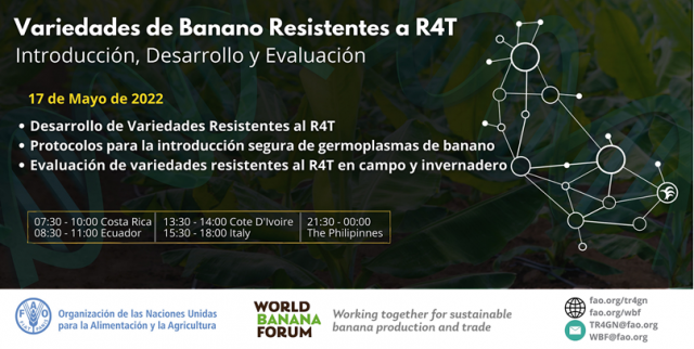 La Fuerza de Tarea sobre R4T formada por expertos de diversos países y partes interesadas, incluidos los gobiernos, el sector privado, las organizaciones de la sociedad civil (OSC) e instituciones de investigación facilita el intercambio de conocimientos sobre las estrategias de prevención, preparación y respuesta al R4T, los últimos avances en tecnologías de diagnóstico, sistemas de seguimiento y vigilancia, mecanismos de detección y alerta temprana, y esfuerzos de mejoramiento para desarrollar variedades de banano resistentes al R4T.