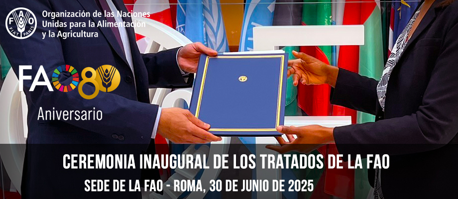 La Ceremonia inaugural de los Tratados de la FAO se celebró en la sede de la FAO durante el 44.º período de sesiones de la Conferencia de la FAO, el 30 de junio de 2025, en la Sala Plenaria. El evento se enmarcó en el contexto de las celebraciones del 80.º aniversario de la Organización.