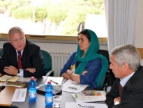 From left to right: Thomas ELHAUT (IFAD – director SSD), Maryam RAHMANIAN (Chair of the High Level Panel of Expert, CFS) and in the foreground Moujahed ACHOURI (FAO – Director NRL), Chair of the Meeting.