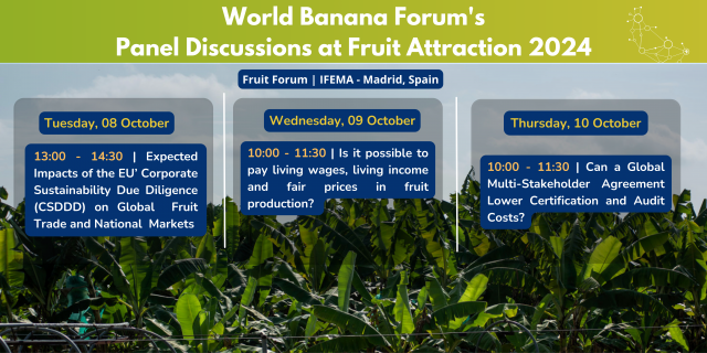 La banane est le fruit frais le plus exporté au niveau mondial (10 milliards de dollars US par an). Elle est une source essentielle de revenus pour des milliers de ménages ruraux dans les pays en développement. Cependant, la production agrochimique intensive ainsi que la baisse des prix aux producteurs ont donné lieu à de nombreux défis environnementaux et sociaux. Ceux-ci ne peuvent être traités que si toutes les parties prenantes collaborent activement.