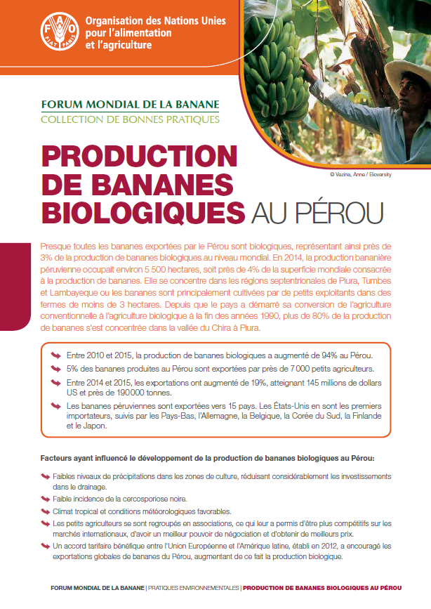 - Entre 2010 et 2015, la production de bananes biologiques a augmenté de 94% au Pérou2.