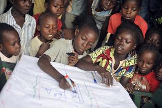 - Les élèves dessinent lors d'une session JFFLS dans Samba, la République centrafricaine